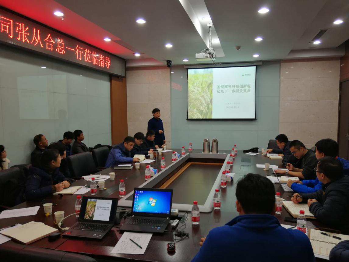 ??? 會上,陳俊仁副主任從基因編輯、基因組、水稻育種等方面對科技中心工作內容、生物技術以及期待對接點進行了介紹。張從合副總介紹了荃銀科研現狀及下一步研發重點,并提出了科研育種相關需求。